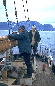 Tilman’s attitude toward his crews varied in proportion to the extent to which they pulled their weight as part of the team. Both 1970 and 1971 proved to be good years for crew, but a number of the later voyages were not so fortunate. Where friction between crew and skipper became a problem, it was probably attributable to the crew containing a disproportionate quantity of ‘professional yachtsmen’ rather than ‘seamen’. The climbing members of the crews knew what to expect, trusted the skipper, and respected his judgment. The yachtsmen among the crew tended to question his actions and doubt his judgment.