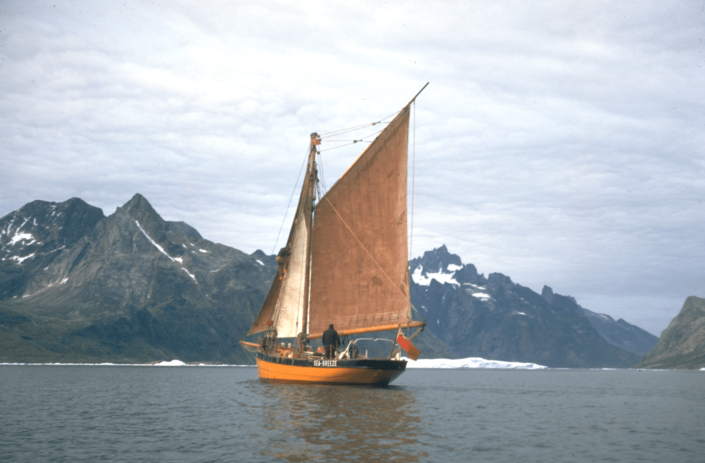I first met Bill Tilman when I was 17 – “between school and university, slightly built – not likely to break a rope by heaving on it” – to quote his own first impression of me. At Christmas, 1969, I was at a loose end. I’d already qualified for a place at the University of Wales starting in September 1970 and a small crew notice in the Sail Training Association journal caught my eye. The skipper and vessel in need of a crew were one Major Bill Tilman and the Bristol Channel pilot cutter “Sea Breeze” which having been launched in 1899, proved to be a year younger than her owner. We exchanged letters, and in February I met him on the boat alongside the Berthon quay on the Lymington River. By the time we met, I’d already tracked down a couple of his books and thought I had formed a fairly accurate picture of both boat and owner – the latter illustrated by the old photograph which appeared on the back cover of each of his books. The boat held few surprises but I confess that I was somewhat taken aback by the appearance of the skipper – older at 70 and hardly a giant himself.
